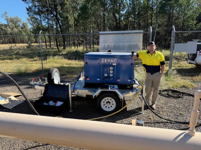 Tremco Pipeline Equipment offers a compact ZEVAC unit for hire, mounted on a trailer – easy to transport and compact for working onsite with a small footprint.